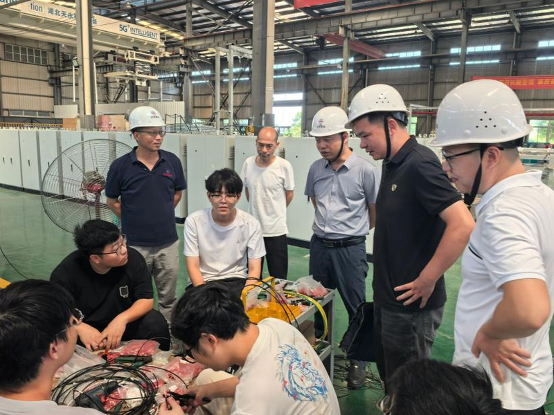 会谈结束后,在企业负责人的陪同下,检查小组深入生产车间,实地查看学生的实习工作环境。从湖北网安科技的设备调试现场,到天华智能装备的自动化生产线操作工位,再到黄石科威自控的电气控制系统研发区域,每到一处,老师们都与实习学生亲切交流,仔细询问他们在工作中遇到的技术难题、生活适应情况及职业发展规划,并结合自身专业经验给予指导。学生们纷纷表示,此次中期检查让他们感受到了学院的关怀,也更加明确了实习目标,将以更积极的态度投入后续实习工作。