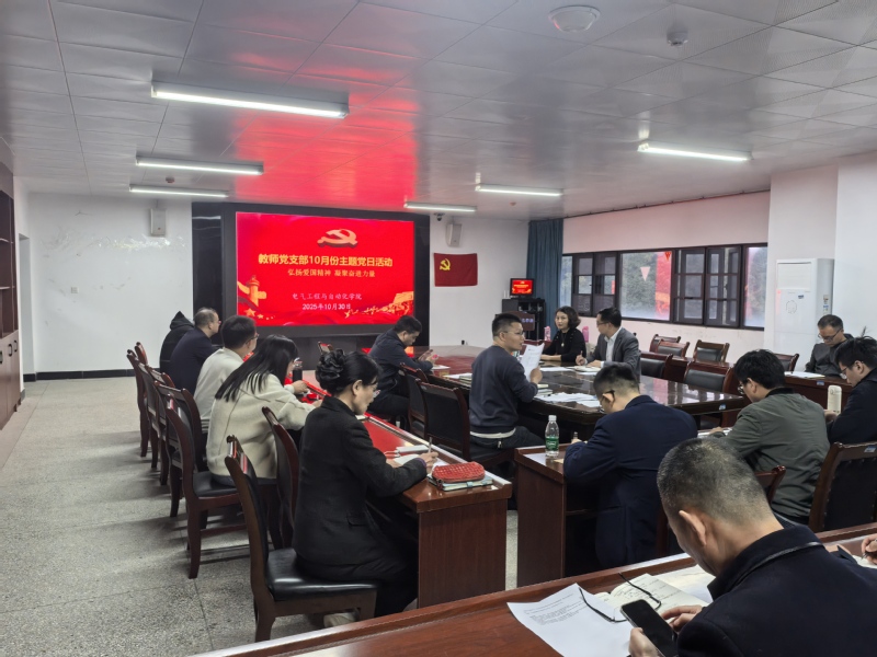 10月30日下午,yl23455永利官网教师党支部在产教融合中心会议室24341开展10月主题党日活动,本月活动主题为“弘扬爱国精神凝聚奋进力量”,会议由院教师党支部书记陈兮主持,全体教师党员及入党积极分子共同参加。