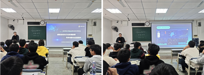 孔工从自己大学时代“懵懂的后进分子”谈起,坦言对自动化的兴趣是在工作中逐渐“越做越有味道”,最终成为一位“自控发烧友”和“终身学徒”。这段真实而励志的成长经历,迅速拉近了与学生的距离。他指出,自动化不仅是技术的集成,更是系统思维与工程实践的深度融合,并通过工业自动控制系统的四层结构——执行层、采集层、传输层与控制层,生动解析了现代工业智能系统的运行逻辑。