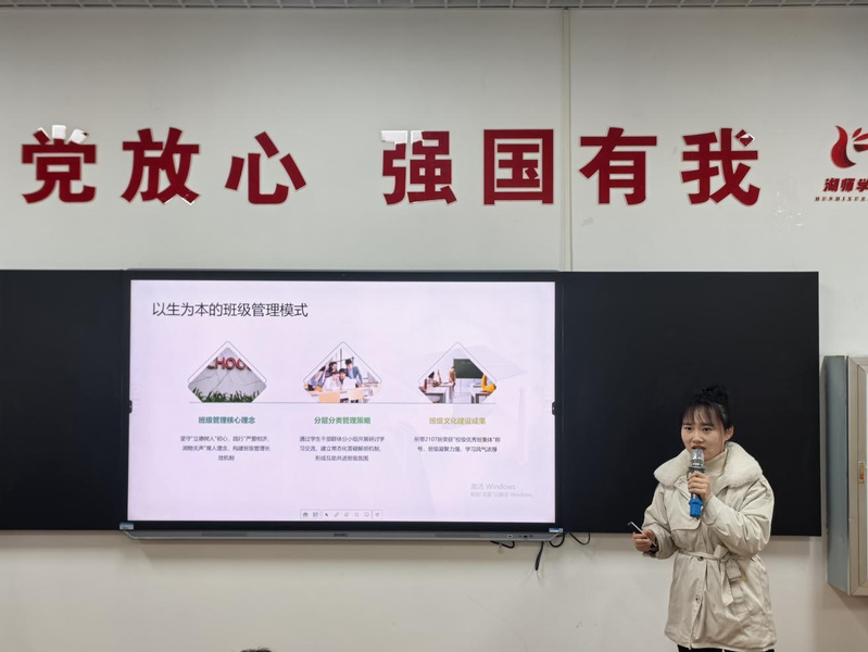 经验分享环节亮点纷呈,育人智慧充分交融。在职班主任代表李维立足“习惯养成、团队意识、长期指导”三维育人理念,结合自身实践,围绕学生创新创业竞赛培育与就业能力提升分享实操经验,为班主任精准对接学生发展需求提供有效借鉴;往届班主任代表康玉红以“理念先行、标杆树立、氛围营造”为核心,聚焦班级学风建设与考研升学指导展开交流,从学习氛围营造、考研规划帮扶等方面给出针对性建议,为后续工作提供宝贵参考。自由交流环节中,班主任们围绕固定班级自习场地、学业帮扶团队效能发挥、学生竞赛精准指导等实际问题深入探讨,思维碰撞间凝聚育人共识,现场氛围热烈而务实。