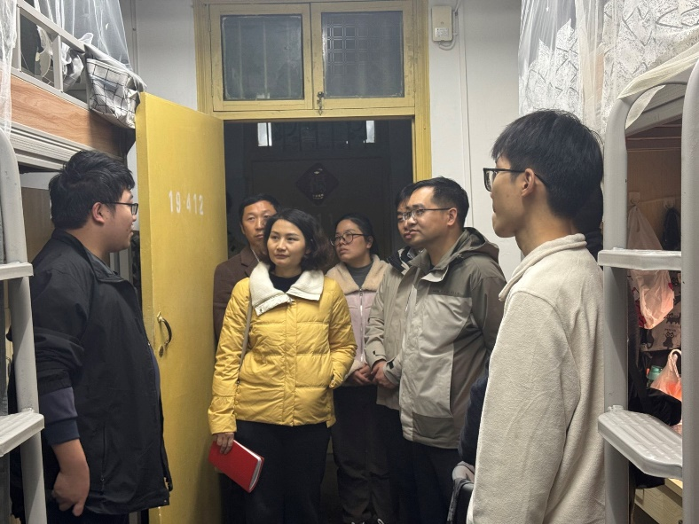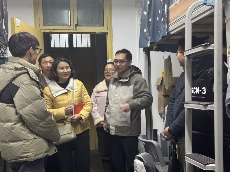 硕士研究生考试与期末考试接踵而至,寒假假期即将开启。为筑牢校园安全防线,深化思政育人实效,精准掌握学生备考状态与思想动态,12月16日晚,学院党委书记严海燕、院长高红亮、党委副书记金高辉、副院长杨青胜、院长助理程伶俐、全体辅导员及班主任以一站式学生社区为核心阵地,开展期末暨假期前专项走访教育活动,推动思政教育融入宿舍管理,用暖心关怀架起师生连心桥。