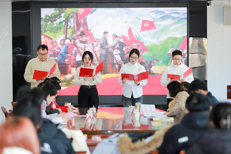 活动在庄严的氛围中开始。全体党员首先按规定交纳党费,并在陈鹏同志的带领下重温入党誓词,铿锵誓言回荡会场,叩问初心、砥砺前行。随后,朱立胜同志领读《中国共产党章程》第二章第十条、第十一条,进一步强化党员对党的组织制度和纪律要求的理解。