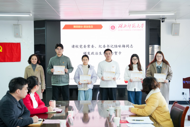 在“党员政治生日”环节,陆咏梅书记为李超男、张会敏、陈鹏、夏琪、王鑫龙等5名同志颁发政治生日纪念贺卡,并与他们亲切合影。五位同志依次发表感言,回顾入党初心,展望奋进征程,纷纷表示将始终铭记党员身份,以实际行动践行入党誓言。